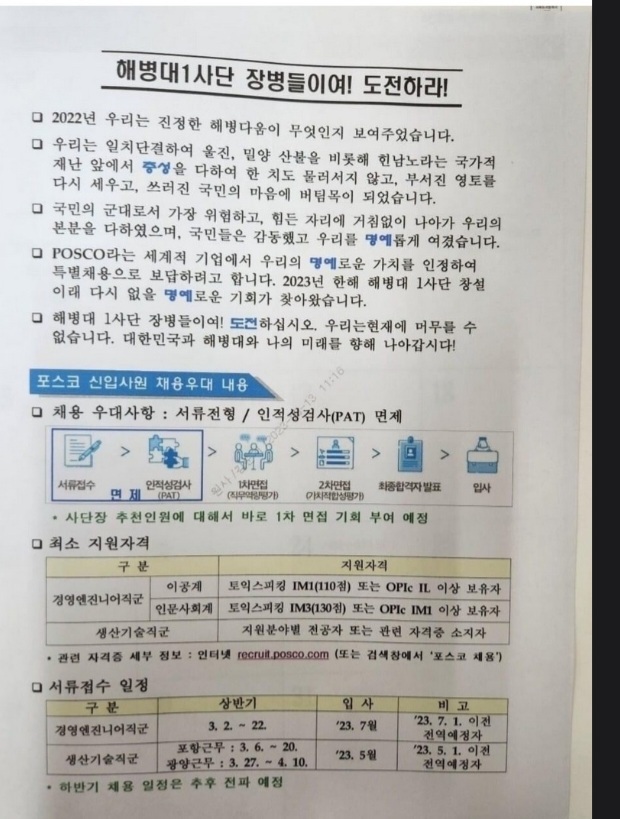 #포스코 #포스코채용 #포스코군인 #포스코해병대 #군인우대채용 #군인특별채용 #포항 #포항채용 #힌남노 #수해복구 #탱크 #철두철미 #포스코자소서 #포스코자기소개서