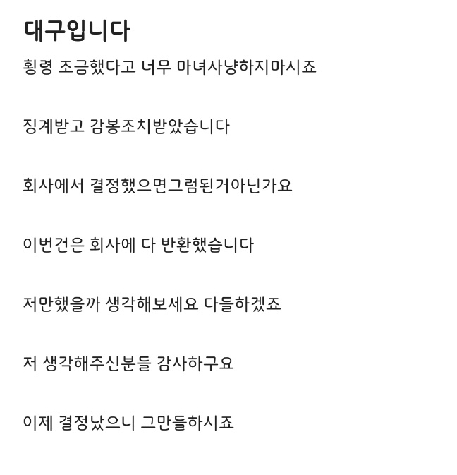 회사 측 “횡령건 사실이나 인사팀에서는 해당 내용 언급한 적 없어”
