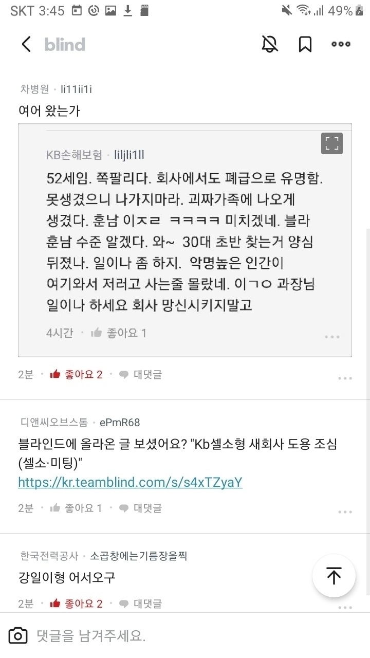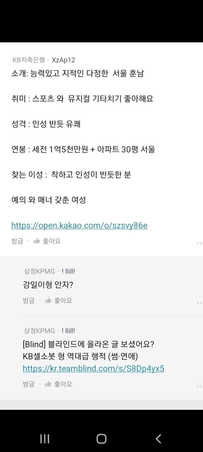 #블라인드 #셀소 #KB #KB은행 #KB증권 #KB보험 #강일 #KB강일 #52세 #급발진 #징계