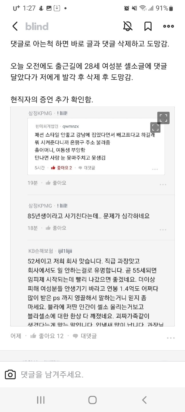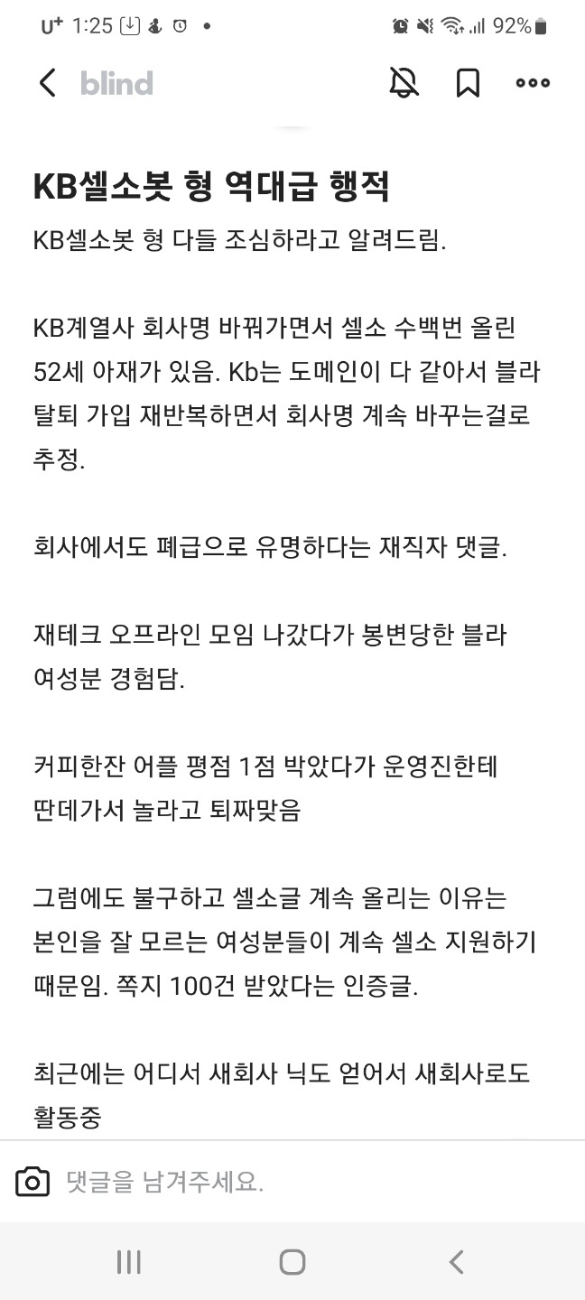 #블라인드 #셀소 #KB #KB은행 #KB증권 #KB보험 #강일 #KB강일 #52세 #급발진 #징계