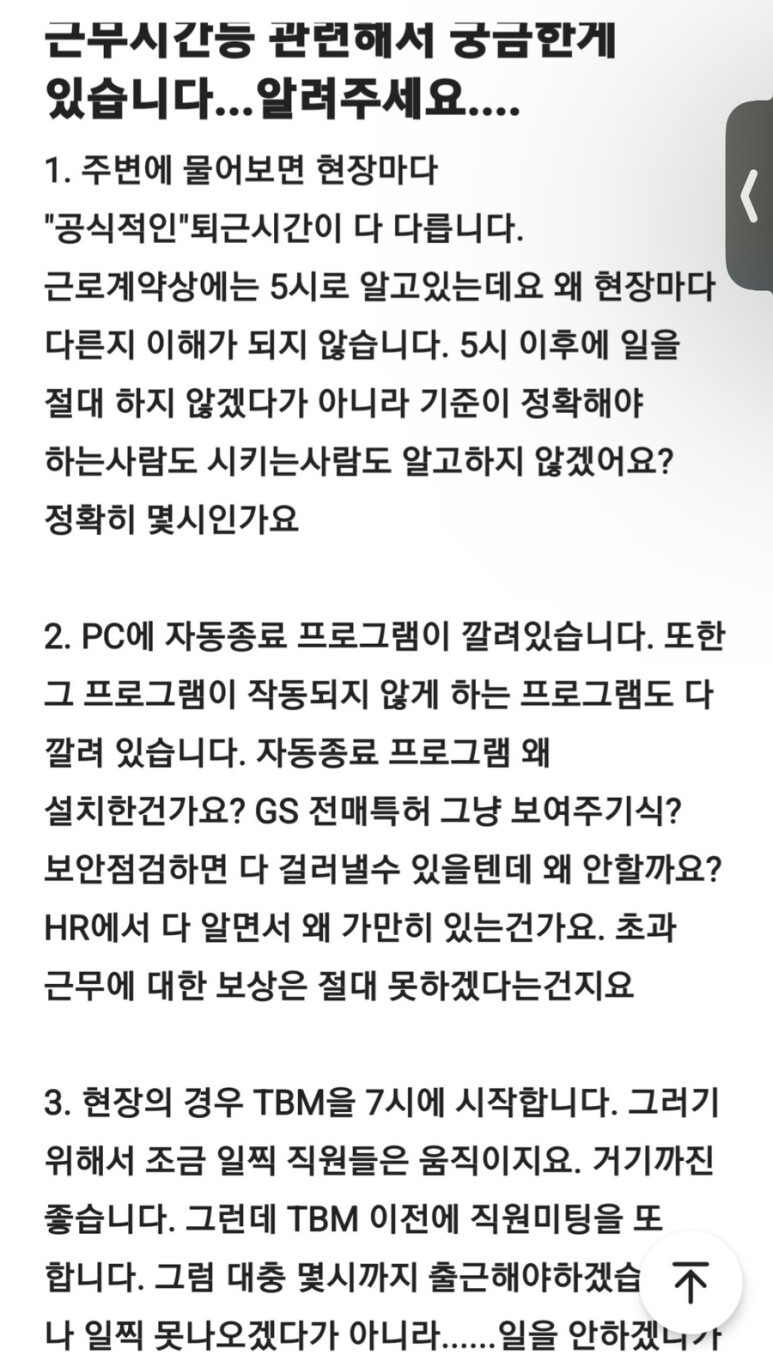 인건비 줄이려고 정규직 3명이 있어야 하는 구역에 정규직 1만 넣고, 정규직 2 계약직 3 총 5명있어야할 곳에 정규직 1 계약직 2 이런식으로 공구, 또는 단지 총괄할 지에스 직원을 필요한만큼 안 넣기 때문임.