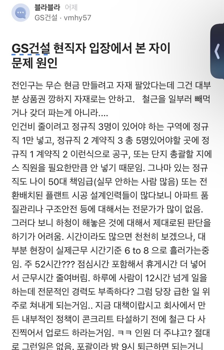 #gs건설 #부실공사 #재공사 #gs건설사고 #현직자 #사고원인 #gs건설 임원