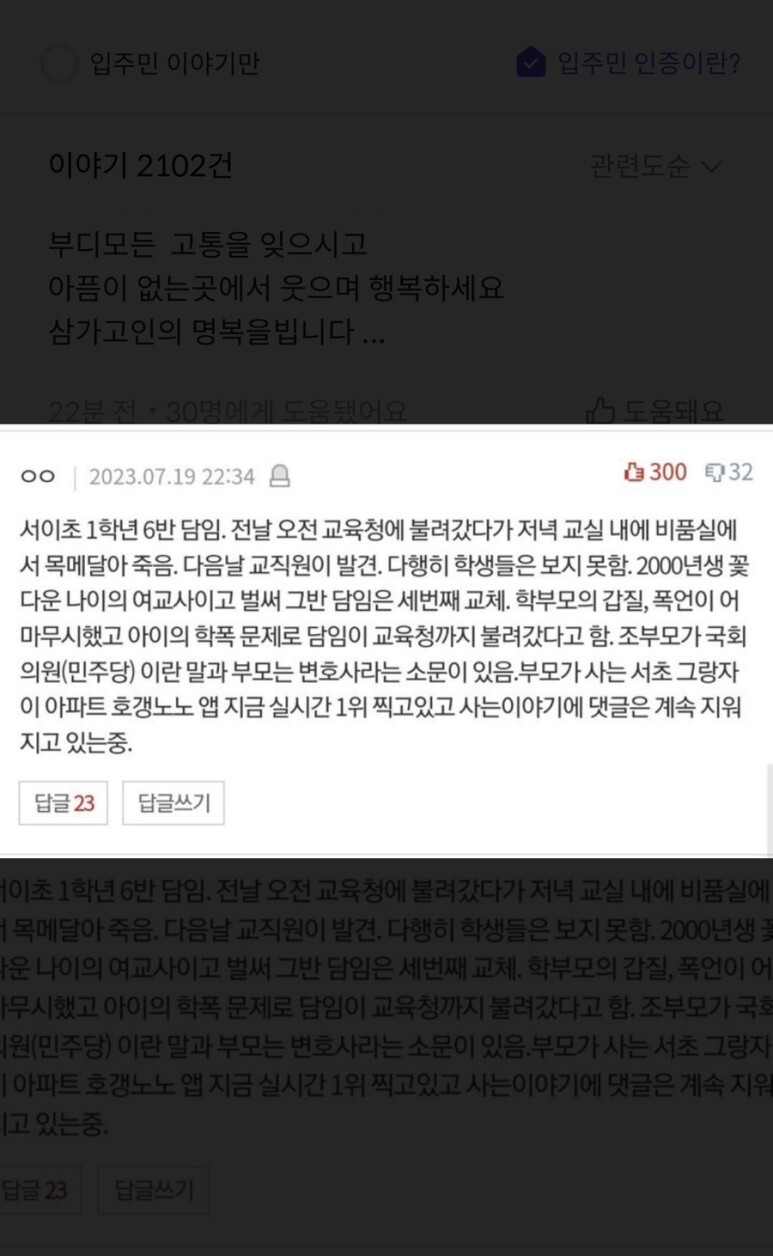 #서이초 #초등학교선생 #초등학교선생자살 #호갱노노 #강남그랑자이 #학부모갑질 #한기호 #한기호의원 #민주당국회의원