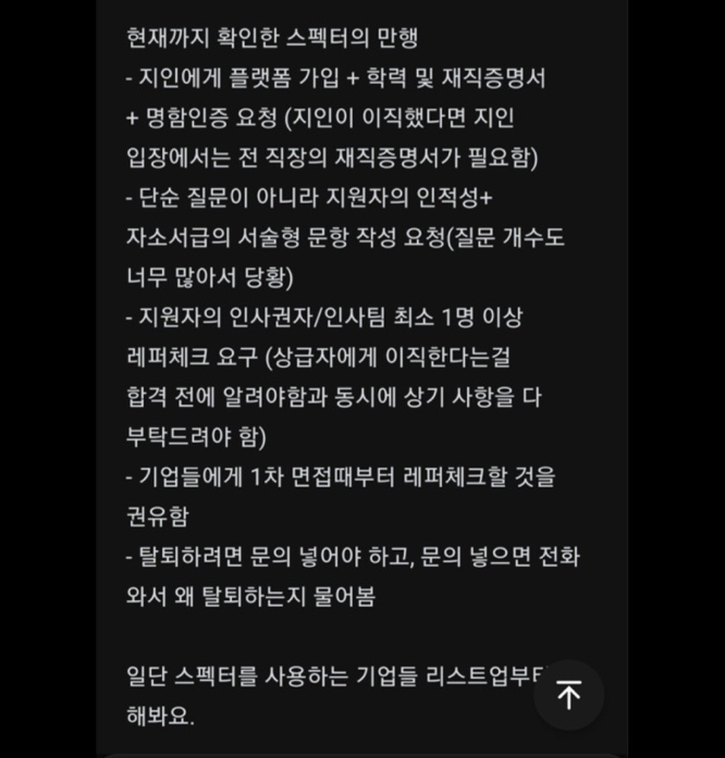 #평판조회 #평판조회업체 #스펙터 #상사피드백 #상사평판조회 #동료평판조회 #스펙터블라인드
