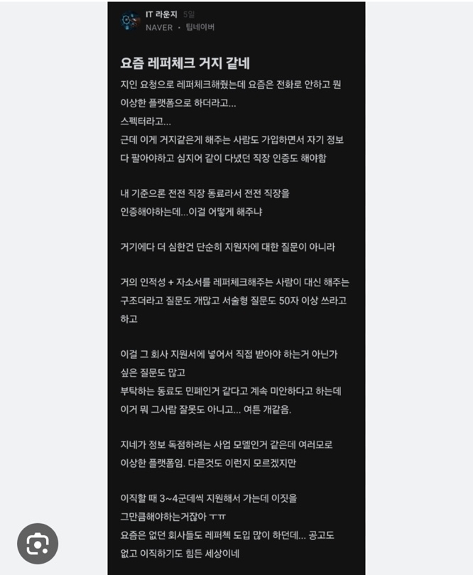 그래서 채용을 하는 입장에서는 평판조회 업체가 반갑다.